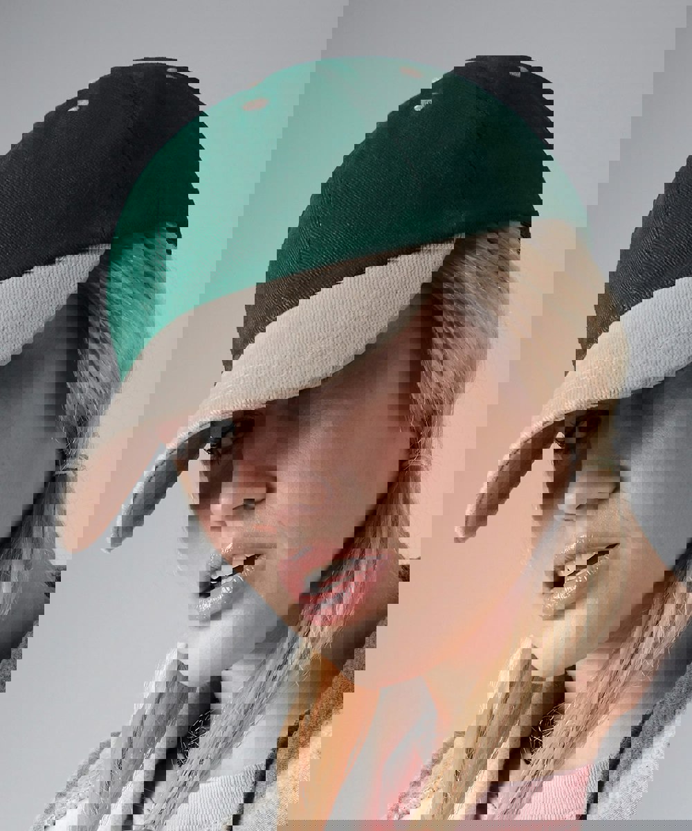 One Size Fits All (OSFA) heavy brushed cotton dual tone cap. Duck billed Brushed Cotton cap with vented crown and 6 panel construction and colour tonal brim.