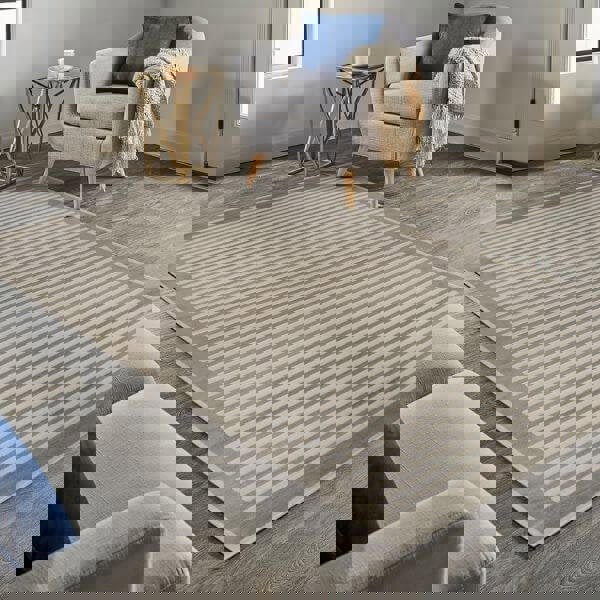 Add a subtle layer of texture and warmth to your interiors with the Belgrade Natural Striped Rug. Its understated stripes in soft natural tones, framed by a refined border, bring a balanced mix of classic and contemporary style to any room.