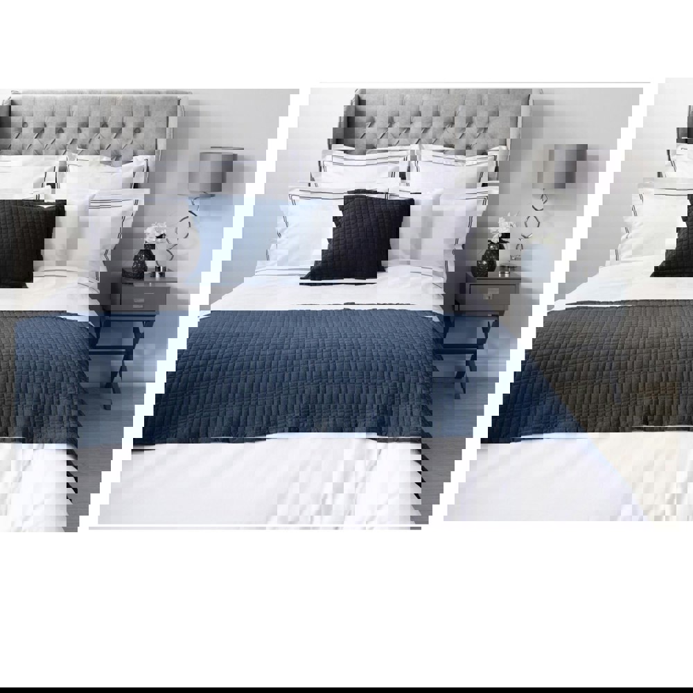 Made from a cotton and polyester blend, this bed runner is designed for everyday use and easy styling. Finished in navy, it pairs well with a wide range of bedding colours and can be layered with cushions or throws to suit your space. The 120gsm weight offers a light, streamlined feel while maintaining the defined quilted look.