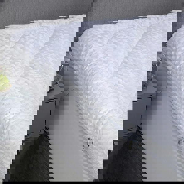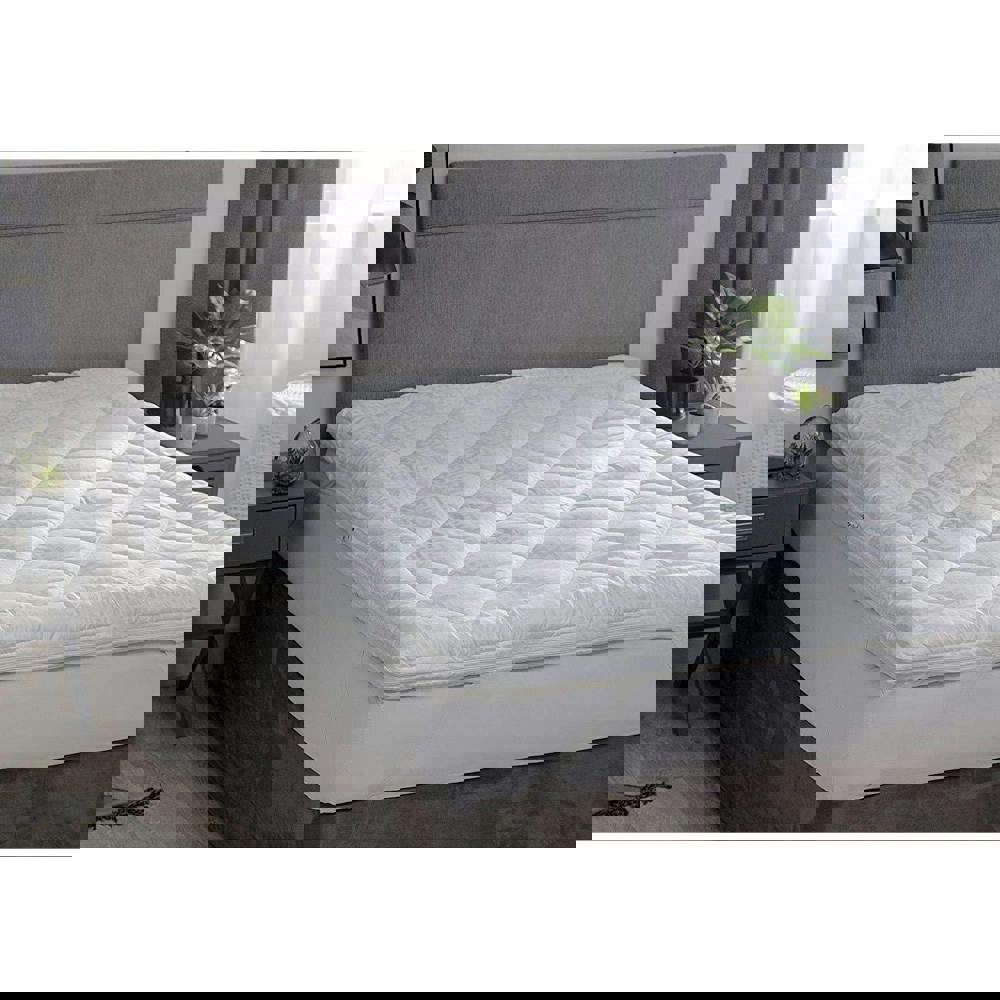 Finished in white, this topper is made from 100% polyester cluster. It is fitted with generous straps to help keep it securely in place during use, making it a practical choice for everyday sleeping arrangements.