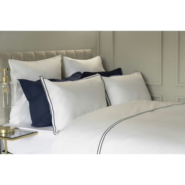 The Belledorm Savoy Duvet Cover Set in navy brings a clean, plain finish to your bedding, with embroidered detail and a classic Oxford edge for a refined look. Made from a woven cotton blend, it is designed for everyday use and a neat, tailored bed presentation.