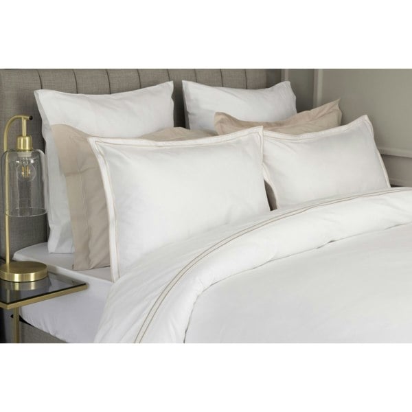 The Belledorm Savoy Duvet Cover Set in Oyster is a plain duvet cover set with embroidered detail and an Oxford edge for a refined finish. Made from a woven cotton blend, it is designed to suit everyday use while keeping your bed looking neat and considered.