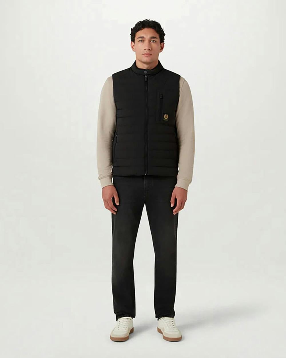 A simple sweatshirt with a high zip collar and Belstaff badge on the chest.