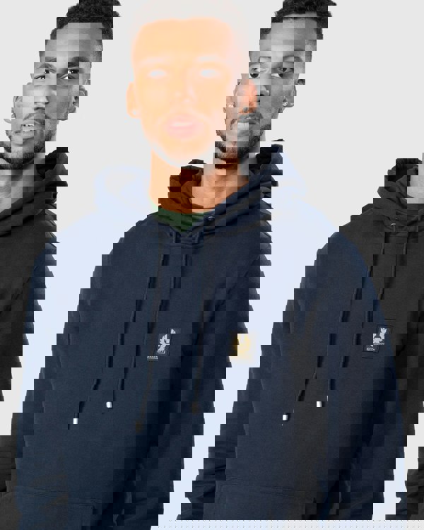 Belstaff Mens Pullover Logo Patch Hoodie in Dark Ink
