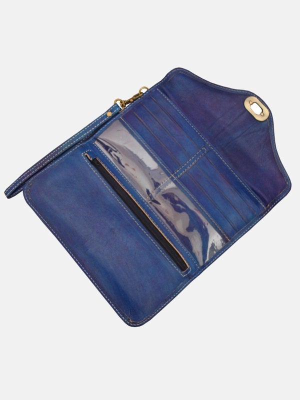 Our Large Leather Purse is the perfect way to stand out from the crowd without breaking your bank balance. The vintage style soft leather and hand-stamped design are eye-catching without being garish. This genuine blue leather purse has multiple compartments and card slots, making it the perfect purse to help you stay organised.