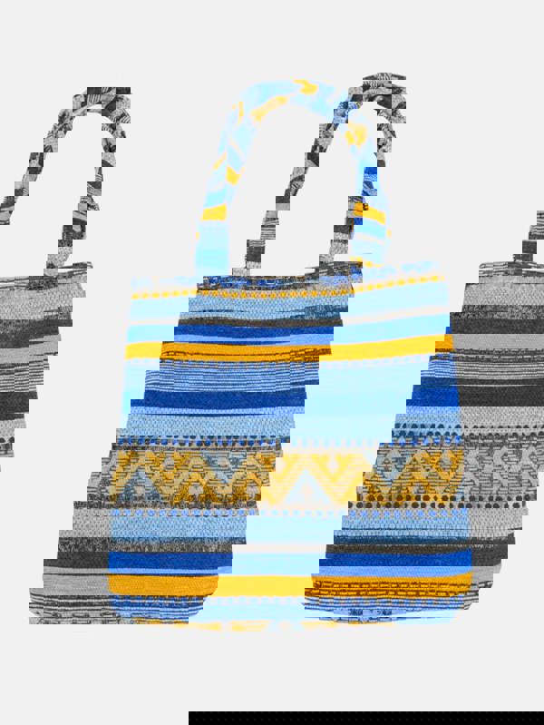 Berber Leather The Nador Large Expandable Fabric Tote in Blue and Yellow