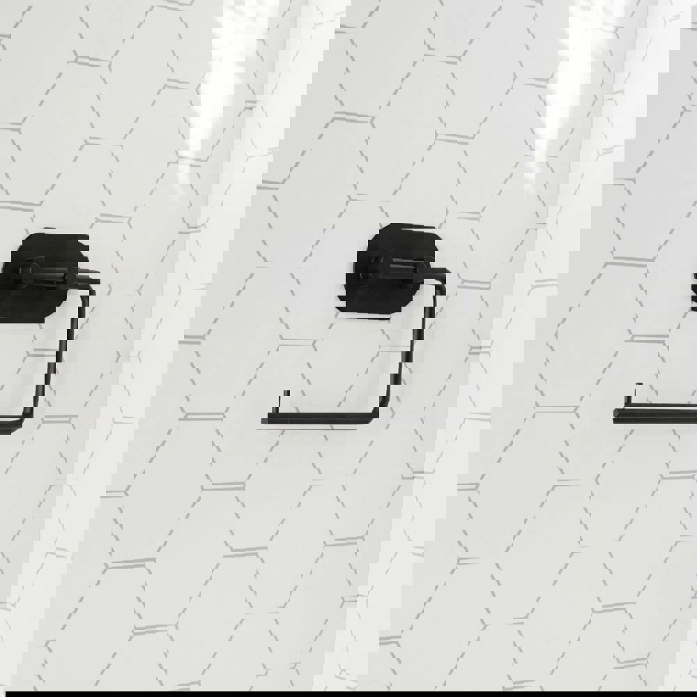 BESLAGSBODEN Design Toilet Roll Holder is a wall-mounted bathroom Toilet Roll Holder with a matt black finish. Designed to keep toilet paper close at hand, it offers a neat, space-saving option for everyday use in bathrooms and cloakrooms.