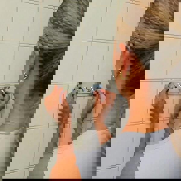The Beslagsboden Design Quadruple Hook is a practical, wall-mounted option for keeping towels and everyday bathroom items neatly organised. Finished in polished stainless steel with a chrome look, it brings a clean, contemporary touch to your space while offering four hooks in one compact design.