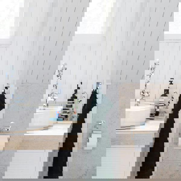 The Beslagsboden Design Single Hook is a compact, wall-mounted hook designed for bathroom use. Finished in polished stainless steel with a chrome look, it offers a clean, contemporary appearance that suits a wide range of interiors. The self-adhesive fixing makes it simple to position on a suitable surface without the need for drilling, helping to keep installation quick and straightforward.