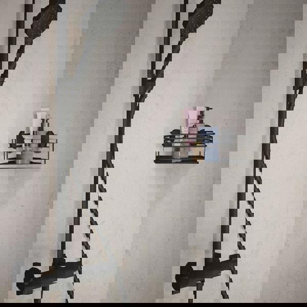 This single corner shower basket is designed to keep everyday bathroom essentials close to hand while making the most of unused corner space. Made from stainless steel with a matt black finish, it offers a clean, modern look for contemporary shower areas. The self-adhesive, wall-mounted design provides a simple way to add storage without drilling, helping to keep bottles and accessories neatly organised.