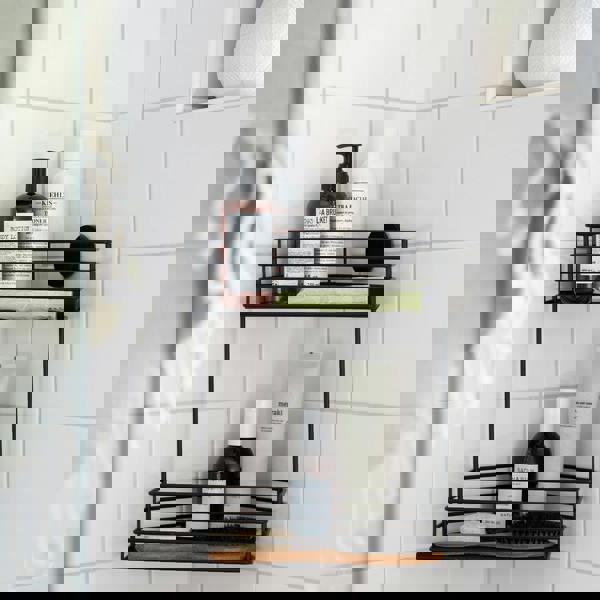 The Beslagsboden Double Corner Shower Basket is a wall-mounted storage solution designed to keep shower essentials organised and close to hand. Made from stainless steel with a matt black finish, it features a double-basket design that fits neatly into a corner, helping to make the most of your shower space while keeping items easy to reach.