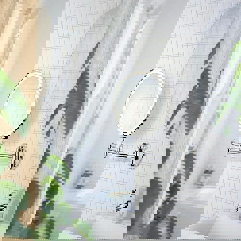 BESLAGSBODEN Polished Chrome LED Mirror (200mm) is a wall-mounted make-up mirror designed for everyday bathroom use, including make-up application or shaving. Finished in polished chrome, it features an integrated LED light to help you see clearly during your routine, while the swing arm design allows you to position the mirror where you need it.
