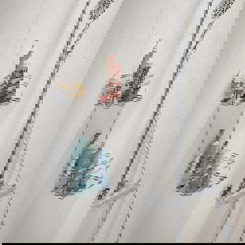 This double shower basket is designed to keep everyday bathroom essentials organised and within easy reach. Finished in polished chrome on stainless steel, it offers a clean, contemporary look that suits a wide range of shower spaces. The wall-mounted design uses a self-adhesive fixing, making it a practical option for adding storage without drilling.