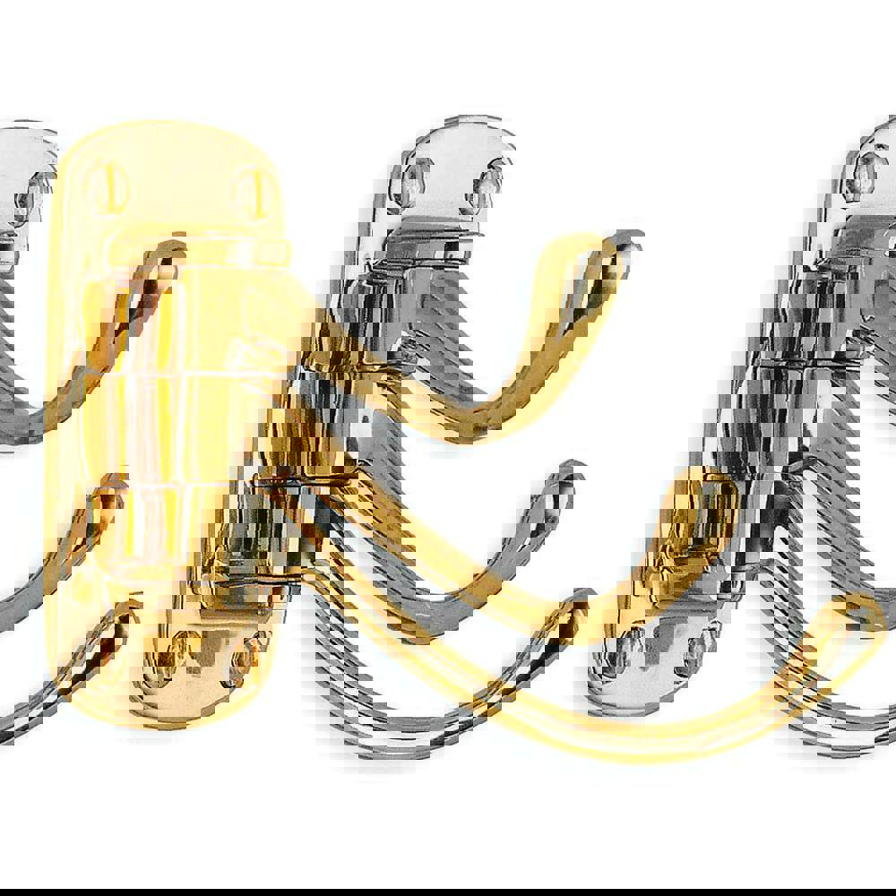 The BESLAGSBODEN triple swinging coat hook is designed to provide a practical hanging point for everyday items such as coats and accessories. Finished in swing polished brass, it offers a clean, considered look suited to hallways, bedrooms or utility spaces.
