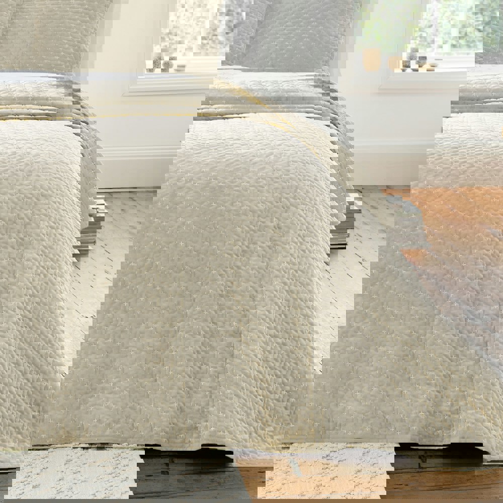 A timeless accent for an elegant and inviting bedroom. Bring effortless luxury to your space with this beautifully crafted bedspread, designed for both comfort and style. The sumptuously soft texture invites an elegant touch, while intricate embroidered detailing adds depth and refinement. Lightly quilted to perfection, it brings an extra layer of softness and sophistication to your space.