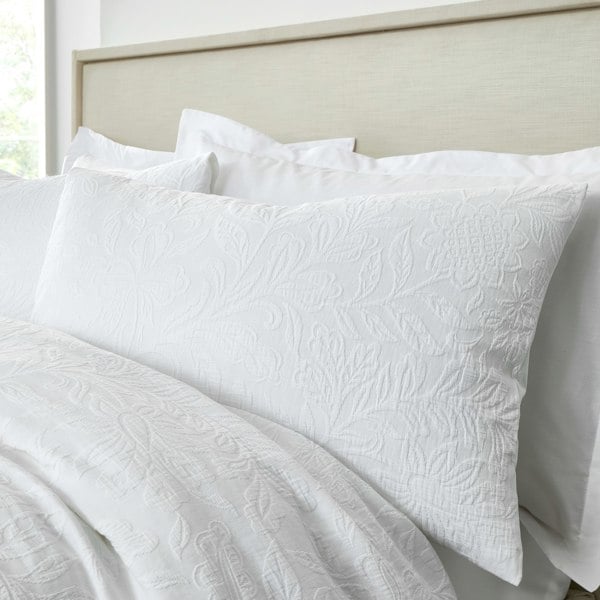 Indulge in timeless sophistication with our woven matelassé jacquard, where an elegant floral damask pattern creates subtle texture and depth. Set against a crisp pure white base, its refined detailing adds a sense of understated luxury. Dream in blissful comfort under wonderfully soft 200 thread count percale cotton, a beautiful naturally breathable fibre that encourages a better night’s sleep.