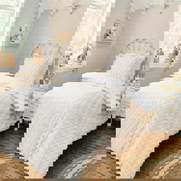 Sleep amongst the stars or in timeless stripes with this fully reversible bedlinen set, perfect to complement any little one’s bedroom décor.