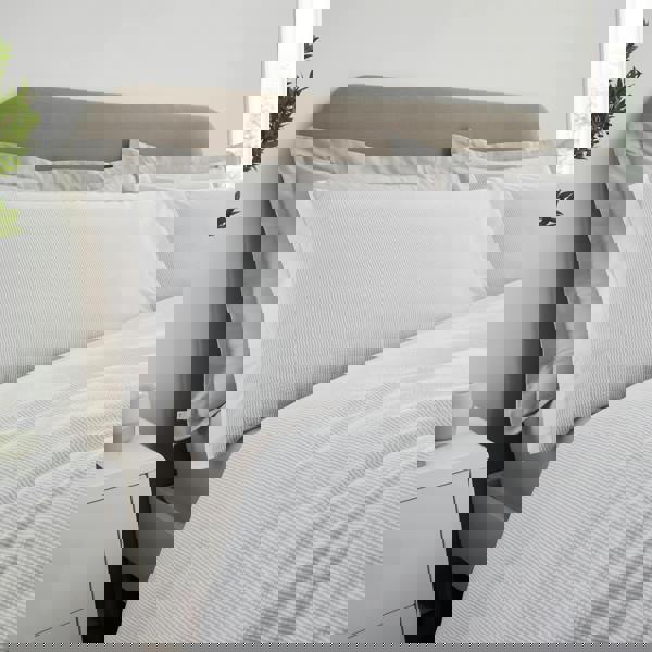 Elevate your sleep space with the effortless texture with this woven seersucker duvet set creating a soft and calming space. Designed with subtle tonal stripes, this set blends laid-back sophistication with breathable comfort , perfect for creating a calm, contemporary retreat. Dream in blissful comfort under wonderfully soft 200 thread count percale cotton, a beautiful naturally breathable fibre that encourages a better night’s sleep.