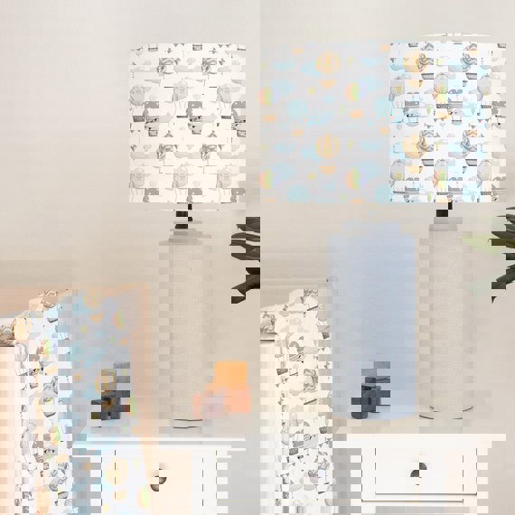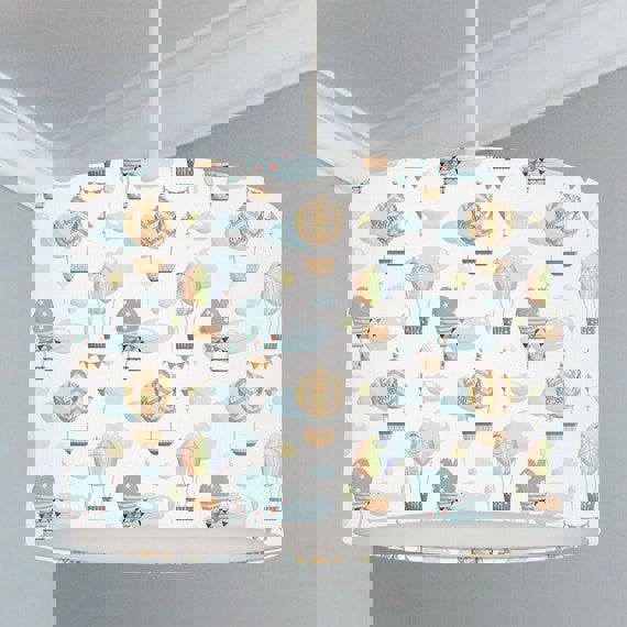 Hot air balloons in a cloudy sky, gender neutral, children's bedroom and nursery lampshade lightshade for ceiling fitting or lamp base.