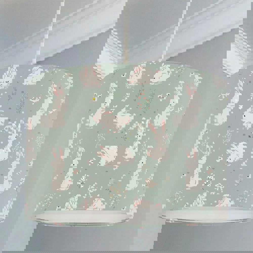 Bunny rabbit children's bedroom or nursery lampshade for ceiling fitting or lamp base, sage meadow pale green