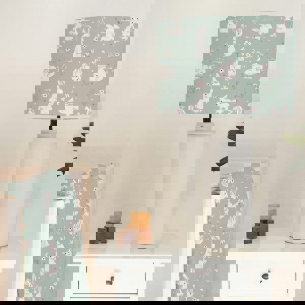 Bunny rabbit lamp, green meadow, floral aniamls children's bedroom nursery lampshade