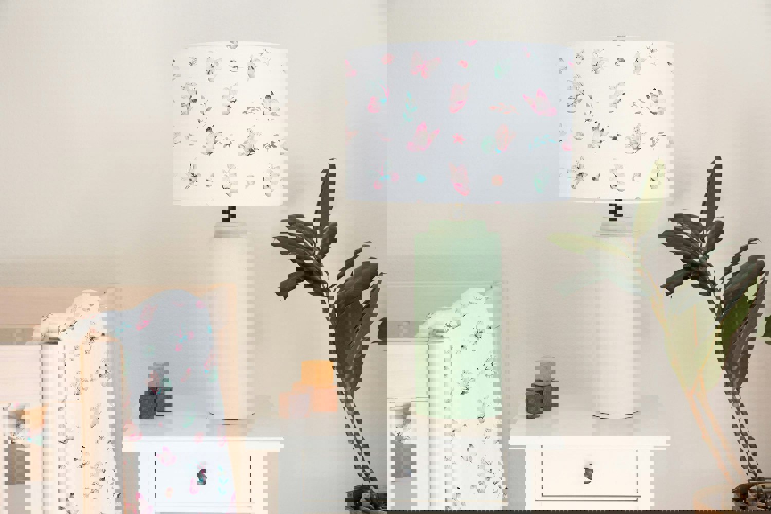 Children's bedroom and nursery lampshade, pink, blue and green pastel butterflies