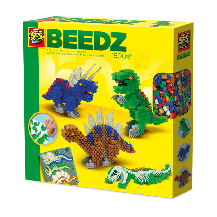 Mad about dinosaurs? Then this Dinosaur iron-on beads set is perfect for you! Lay the parts of the T-Rex, Triceratops and Brachiosaurus on the small pegboard, have a parent iron it, and then stick the parts on the right place on the dinosaur skeleton. That’s how to make your own crazy dinosaurs in 3D! SES Creative’s iron-on beads do not contain PVC and are of the highest quality. You can entertain yourself for hours and the result will always be colourful.