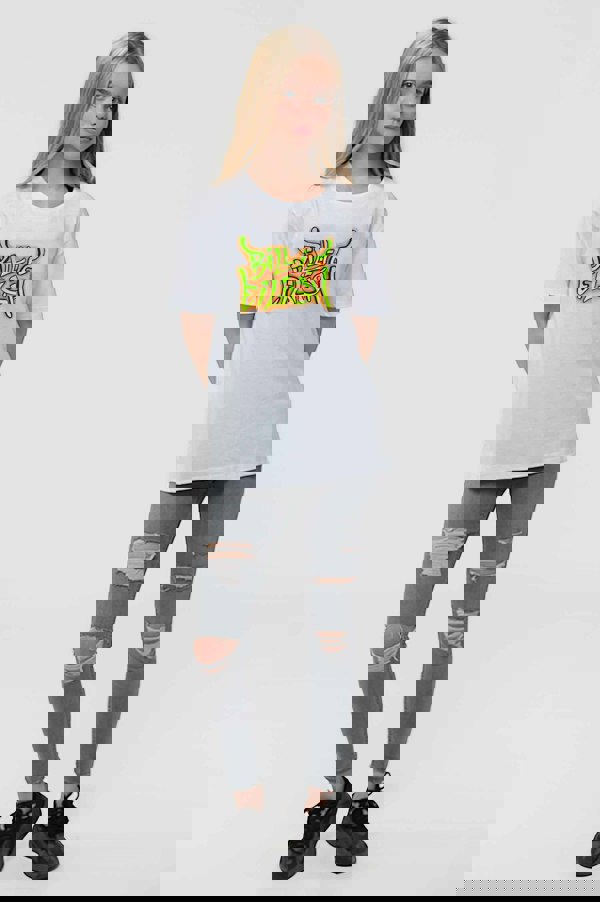 An official licensed Billie Eilish Kids Tee featuring the 'Graffiti' design motif. This high quality t-shirt design is available in the black colourway. Classic boys fit tee featuring short sleeves and crew neck. Comes in a wide range of sizes from 3 years through 13 years, subject to availability.