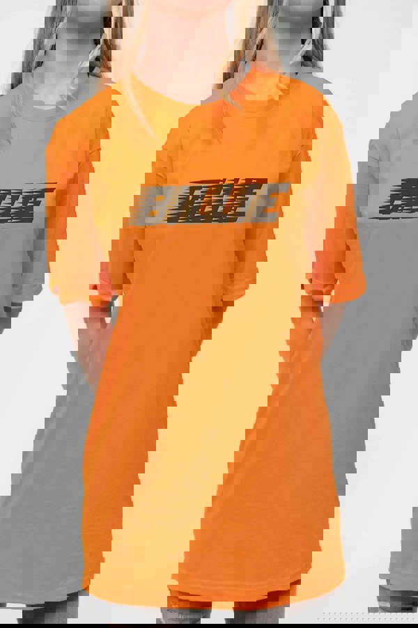 This Brand New Official Billie Eilish T Shirt with a Classic 'Racer Logo & Blohsh' Design on a kid's orange Short Sleeve Crew Neck T Shirt. This is the perfect gift for any fan. Kids from the ages of 5 up to 14 years old.