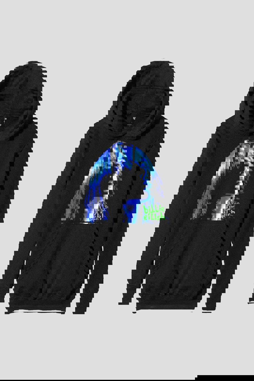 An official licensed Billie Eilish Unisex Pullover Hoodie featuring the 'Neon Shadow Blue' design motif. This high quality Pullover Hoodie is available in a black colourway. Comes in a wide range of sizes from Small through XX-Large, subject to availability.