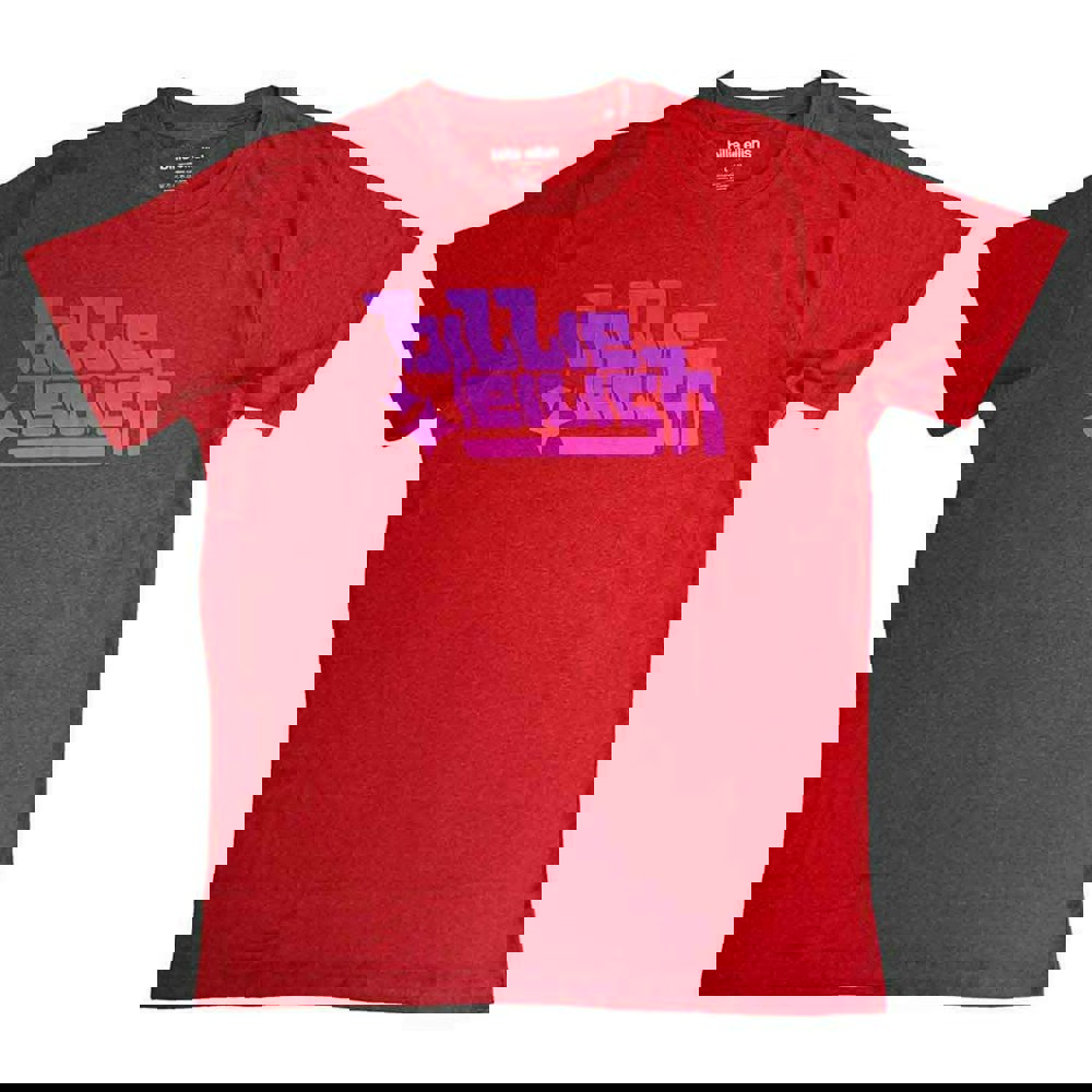 An official licensed Billie Eilish Unisex T-Shirt featuring the 'Purple Logo' design motif. This high quality T-Shirt is available in a red colourway. High quality classic fit tee with short sleeves and crew neck. Features front printing. Comes in a wide range of sizes from Small through XX-Large, subject to availability.