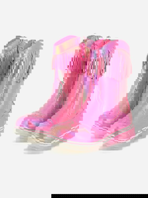 These Billieblush girls’ snow boots come in pink with a metalised faux leather finish and fringe detailing. A branded print sits at the side, while a zip on the inside provides a secure closure. Inside, the boots are lined with textile and finished with a goat leather insole.