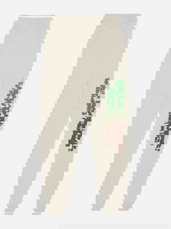 Billionaire Boys Club boys gradient logo joggers in ivory combine vintage nostalgia with modern premium materials. The back carries an iridescent gradient multicolour print, finished with triple multicolour brand motifs in a matching gradient iridescent effect. An elastic drawcord and trims complete the design.