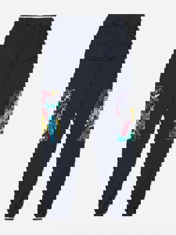 Billionaire Boys Club boys’ robot cargo trousers in navy with a utilitarian streetwear look. The design includes cargo pockets down the sides with a multicolour robot graphic print. An elasticated waistband provides a clean finish, and the trousers are completed with a straight hem.