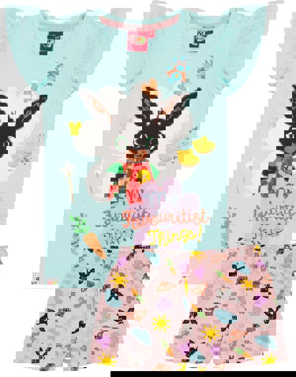 Perfect for keeping your little ones comfy whilst watching their favourite CBeebies kids show, these Bing pjs come with a short sleeve blue top and pink shorts
