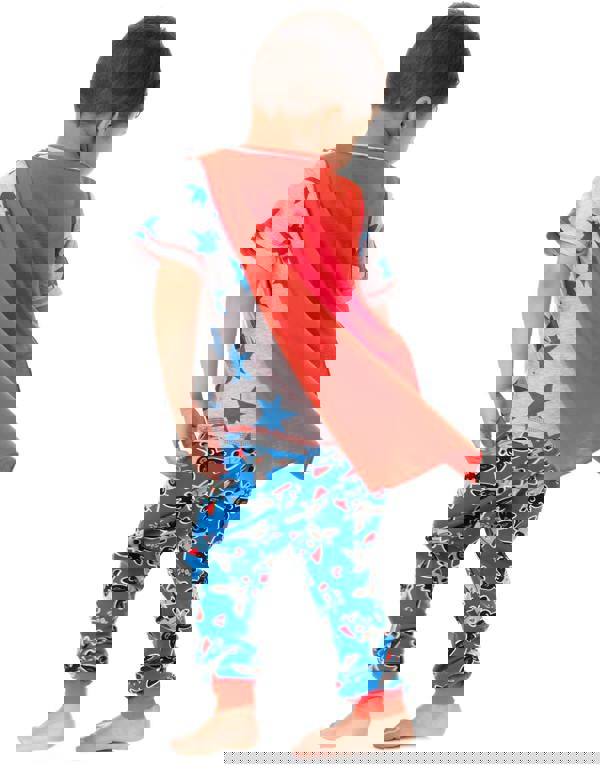 Paired perfectly with long blue Bing Bunny pj bottoms that display an all-over graphic print of the favourite character Bing and Hoppity Voosh making the perfect gift for fans of the Cbeebies TV Show, Bing Bunny! The Bing Bunny top for boys is made from mixed fibres and the cape is 100 percent polyester whilst the bottoms are made from 100 percent combed cotton with 95 percent cotton and 5 percent elastane details on the elasticated trouser cuffs for a soft and comfortable feel