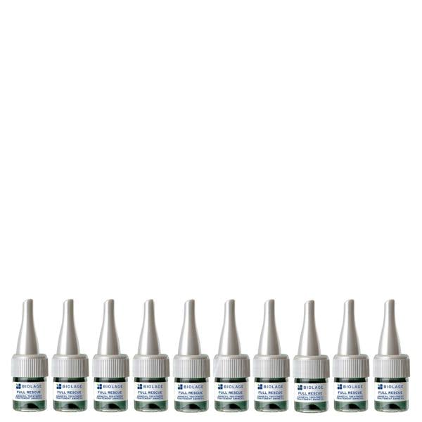 Biolage Full Rescue Aminexil Treatment is a scalp treatment presented in 10 ampoules of 6ml. Clinically and dermatologist tested, it helps reduce the rate of hair loss and targets hair fall due to breakage. The formula contains active aminexil and is worked into the scalp as a leave-in step.