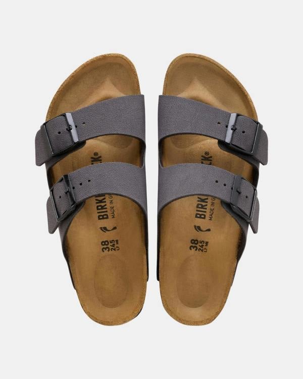 The often imitated, never duplicated, category-defining, two-strap wonder from Birkenstock. A comfort legend and a fashion staple. With adjustable straps and a magical cork footbed that conforms to the shape of your foot, a truly custom fit is as effortless as the classic design.