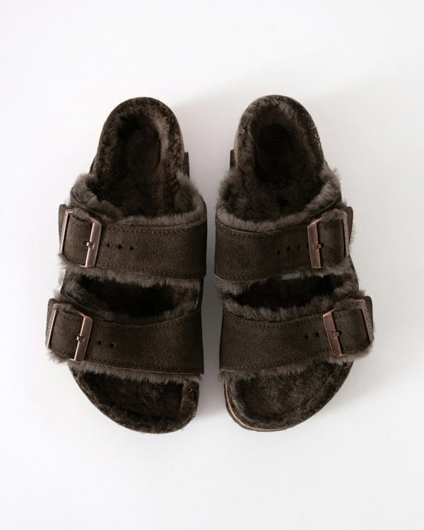 The bolder, the better! This is a wonderfully comfy version of the classic BIRKENSTOCK Arizona model with shearling footbed lining and straps lined with lambskin. The sandal can be individually adjusted to the wearer’s feet using the two metal pin buckles in a vintage look. This ensures an excellent fit and firm grip. The comfort level is boosted by the flexible EVA outsole with signature BIRKENSTOCK bone profile, which enables a healthy rolling motion.