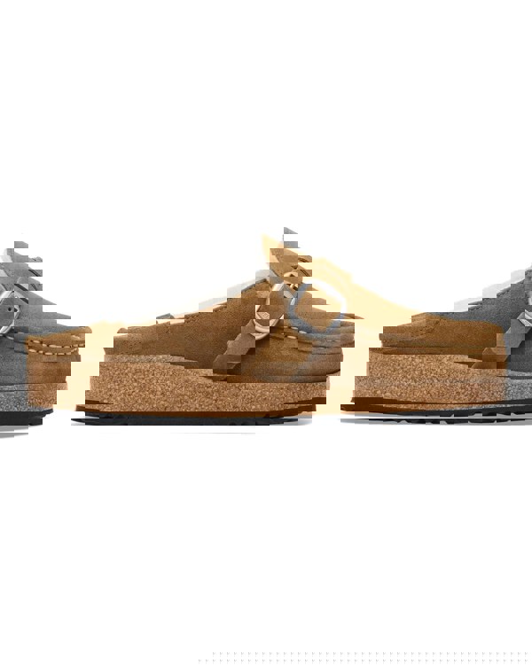 The BIRKENSTOCK Buckley is a semi-open moccasin-style clog that’s instantly recognizable as an authentic BIRKENSTOCK original thanks to its thick cork sole. The striking stitching catches the eye. Here, the classic model comes in a particularly cozy version with shearling and our popular Big Buckle. The perfect shoe for cozy winter evenings by an open fire! Its natural design is down to the upper made from especially soft suede, which hugs the foot like a second skin.
