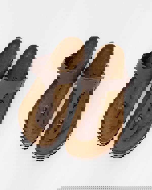 Birkenstock brings a refined finish to warm-weather dressing with the Gizeh BFBC womens flip flop in mocha. This thong sandal keeps the look clean and minimal, paired with practical adjustability for everyday wear. The upper is made from Birko-Flor® in a nubuck look, offering a smooth, leather-like appearance while remaining synthetic.