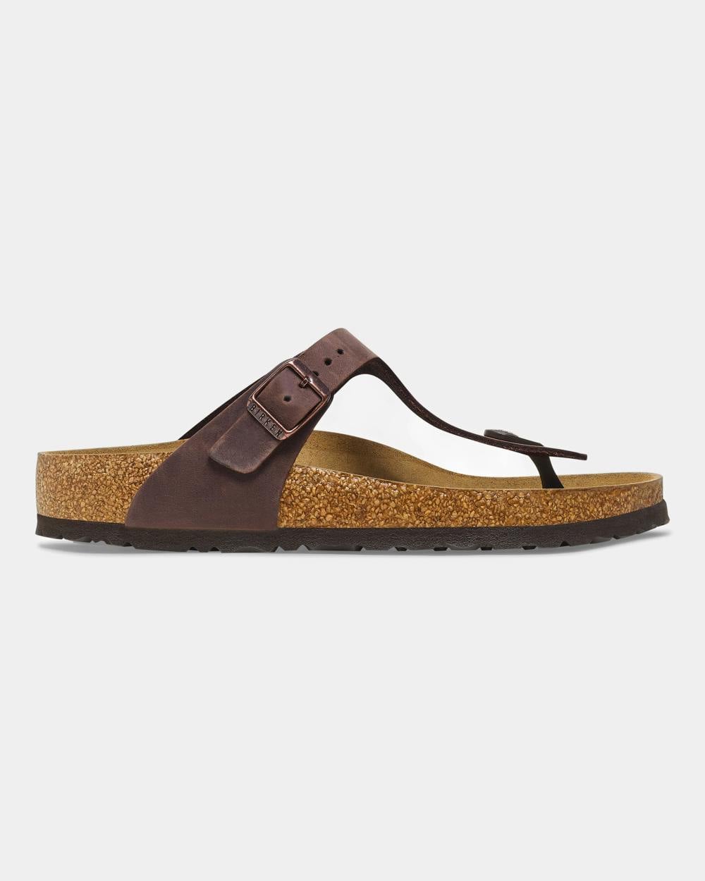 Birkenstock’s Gizeh Natural Oiled Leather sandals in Habana bring a clean, thong-strap profile to warm-weather dressing. This women’s style is finished in oiled leather for a distinctive, natural look that suits everything from city days to holiday packing. The Gizeh silhouette keeps the focus on simple lines and an easy, slip-on feel, making it a considered choice when you want a pared-back sandal with a premium leather upper.