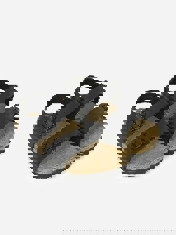 Birkenstock Kids New York Classic Sandals in black combine a Birko-Flor upper with a moulded cork foot-bed. Two adjustable straps fasten with branded buckles for a secure fit, while the slip-on style keeps them simple to wear. Made in Germany, this pair is finished with a suede lining and a synthetic sole.