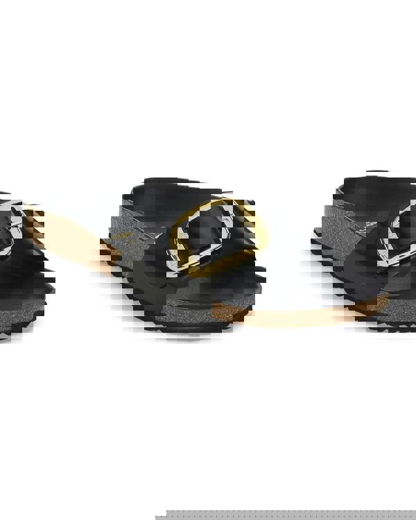 Clean and pared back, the Birkenstock Madrid Big Buckle sandals bring a polished finish to a long-standing silhouette. This women’s style is made with a high-shine black natural leather upper with a patent coating, paired with a single strap and an oversized metal pin buckle for an adjustable fit. Colour-coordinated details keep the look streamlined.