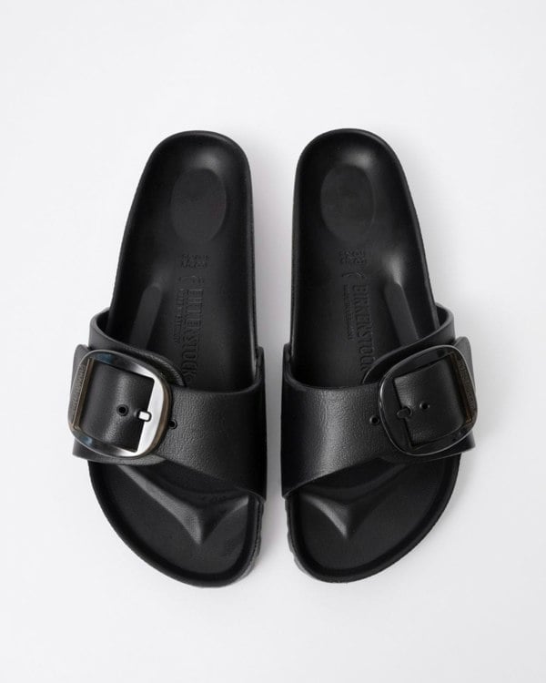 This is a new and modern interpretation of the BIRKENSTOCK classic Madrid. This version features our popular Big Buckle made from a stainless synthetic material and makes an impression with its durability and minimalist design. Modeled on the cork sandal, it is made from the ultra-lightweight and highly flexible synthetic material EVA. The high-quality, odor-neutral EVA has been tested for harmful substances and combines numerous positive attributes: it is very light, highly elastic, shock-absorbent, water-resistant, and skin-friendly.
