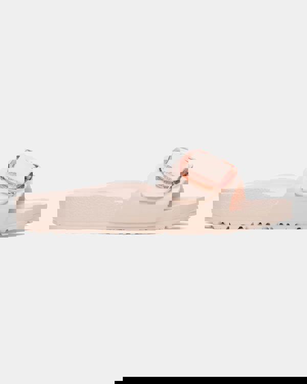 This is a new and modern interpretation of the BIRKENSTOCK classic Madrid. This version features our popular Big Buckle made from a stainless synthetic material and makes an impression with its durability and minimalist design. Modeled on the cork sandal, it is made from the ultra-lightweight and highly flexible synthetic material EVA. The high-quality, odor-neutral EVA has been tested for harmful substances and combines numerous positive attributes: it is very light, highly elastic, shock-absorbent, water-resistant, and skin-friendly.