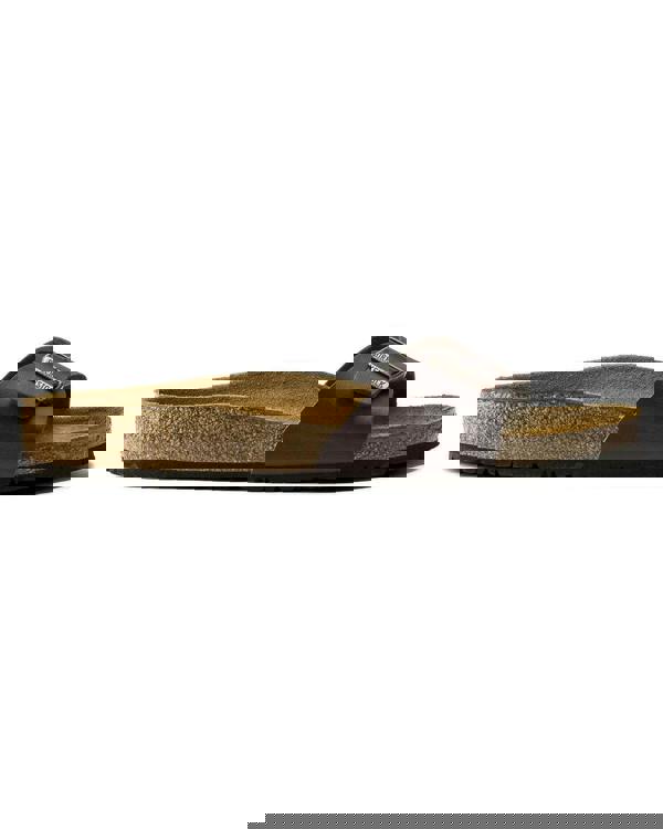 Birkenstock’s Madrid sandals are a long-standing classic, first introduced as a “gymnastics sandal” and now recognised for their clean, single-strap profile. This women’s style is finished in dark brown and uses Birko-Flor® for the upper, paired with an anatomically shaped cork-latex footbed.