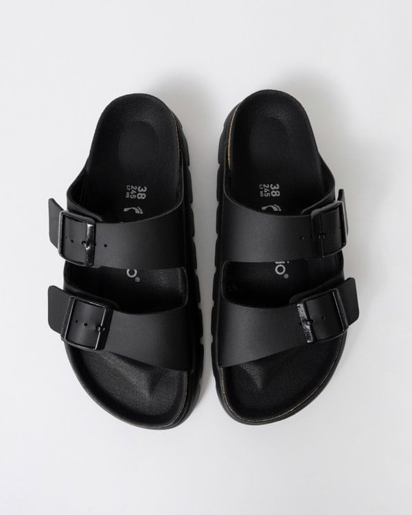 A platform sole takes the Arizona's classic design to new heights—and your style along with it. Its smooth Birko-Flor® upper creates an instant color contrast against its stacked sole. Featuring a contoured footbed that gives you the support of a BIRKENSTOCK sandal.