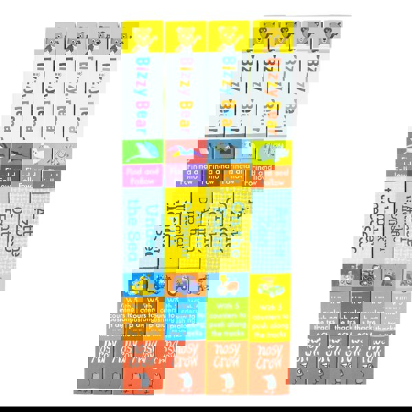 Bizzy Bear Find & Follow 4 Books Set brings together four interactive stories featuring Bizzy Bear as he tackles busy days at the zoo and on the farm, and heads out on adventures at a dinosaur park and under the sea. Each book invites children to take an active role, using simple first words and text prompts designed to encourage talking while exploring key vocabulary linked to each setting.