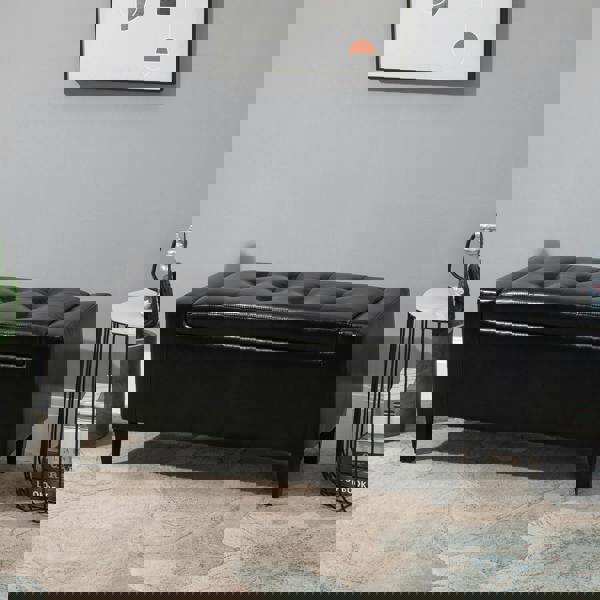PU Leather Storage Ottoman Bench Wood Frame w/ Tufting Feet